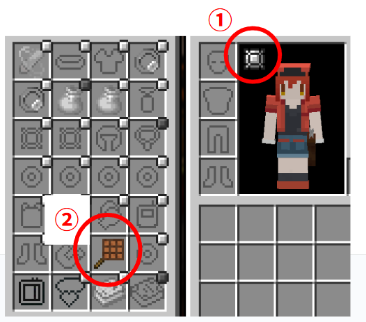 - インベントリを開いてCurios APIの装備ウィンドウを開きます。